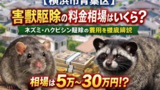 「夜中に天井裏を走り回る音がして眠れない……」 「青葉区で害獣駆除を頼みたいけど、結局いくら払えば安心なの?」 横浜市青葉区にお住まいで、ネズミやハクビシンの被害に頭を抱えているあなた。 実は青葉区は、閑静で美しい街並みが広がる一方で、寺家...