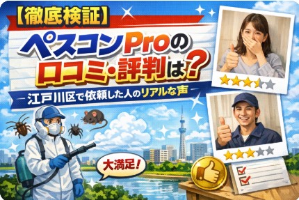 ネット上の口コミは良いけれど、「サクラじゃないの?」「実際の作業はどうなの?」という疑問を解消するため、本記事では江戸川区特有の住宅事情を踏まえたペスコンProのリアルな評判を徹底検証。