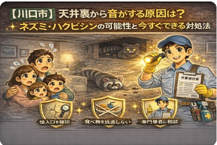 この記事では、川口市の地域特性を踏まえた「音の正体」の見分け方から、今すぐやるべき応急処置、そして二度と害獣を寄せ付けないためのプロの解決策までを徹底解説します。