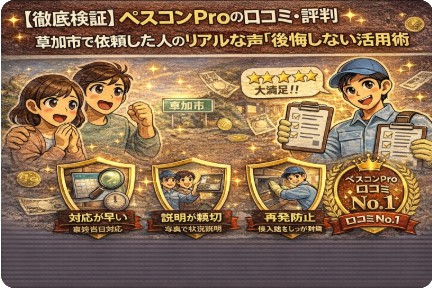 この記事では、草加市を含む関東エリアで圧倒的な支持を集める「ペスコンPro」について、利用者のリアルな口コミ・評判を徹底調査。