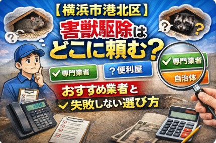 港北区は飲食店街と住宅地が近接し、さらに鶴見川沿いの自然も豊かなため、一度害獣に狙われると自力での解決は極めて困難。
